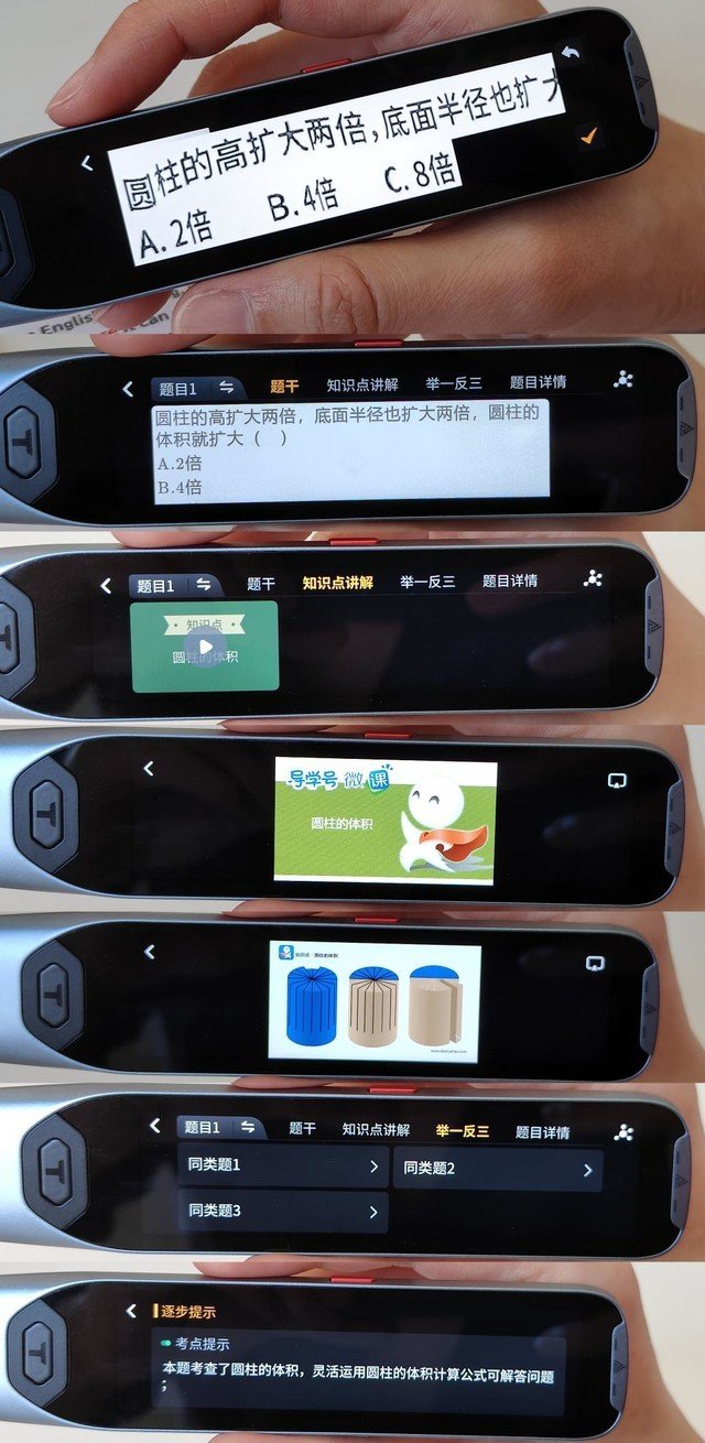 只需把题扫下来,即可得到解答这个题的方法与思路,同时还有视频的知识点讲解课程,以及举一反三的同类题可以练习,这里值得注意的是,阿尔法蛋AI词典笔T20题目导学功能并不会直接给孩子带来这道题的答案,而是融会贯通的通过知识点的讲解让孩子理解和掌握这道题,今后再遇到这道题的时候,不会再摸不着头脑。