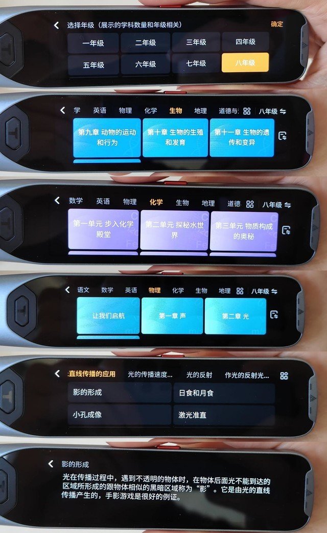 阿尔法蛋AI词典笔T20充分看到了孩子的这一痛点,将小初高不同阶段的知识点全部整合到了词典笔当中,共有语文、数学、物理、化学、生物、历史、地理、道德与法治9门学科,以卡片的方式进行呈现,进而系统性地讲解每一个需要重点复习的部分,孩子不再需要翻越厚重的辅导书来耽误学习时间。