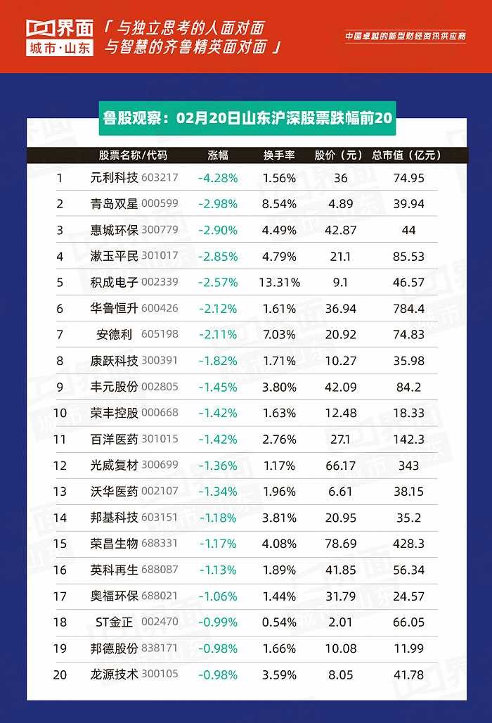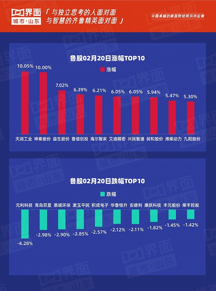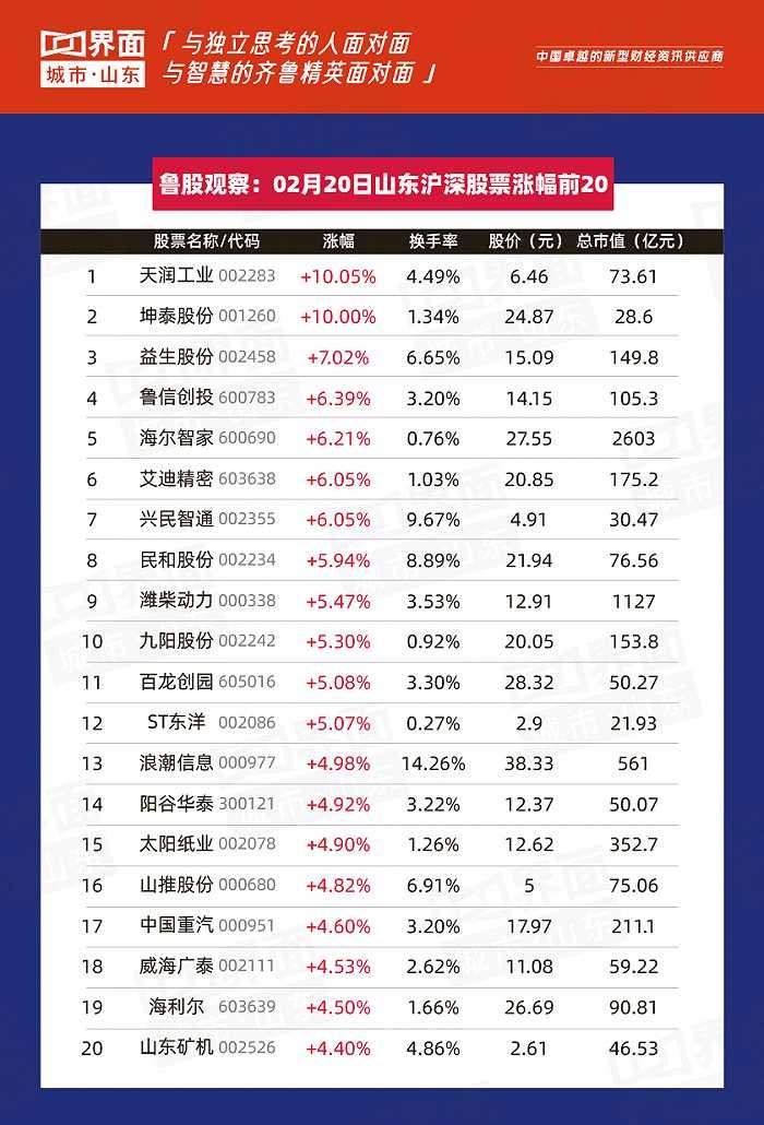 原标题:鲁股观察 | 2月20日:工程机械板块走强,天润工业10.05%领涨山东