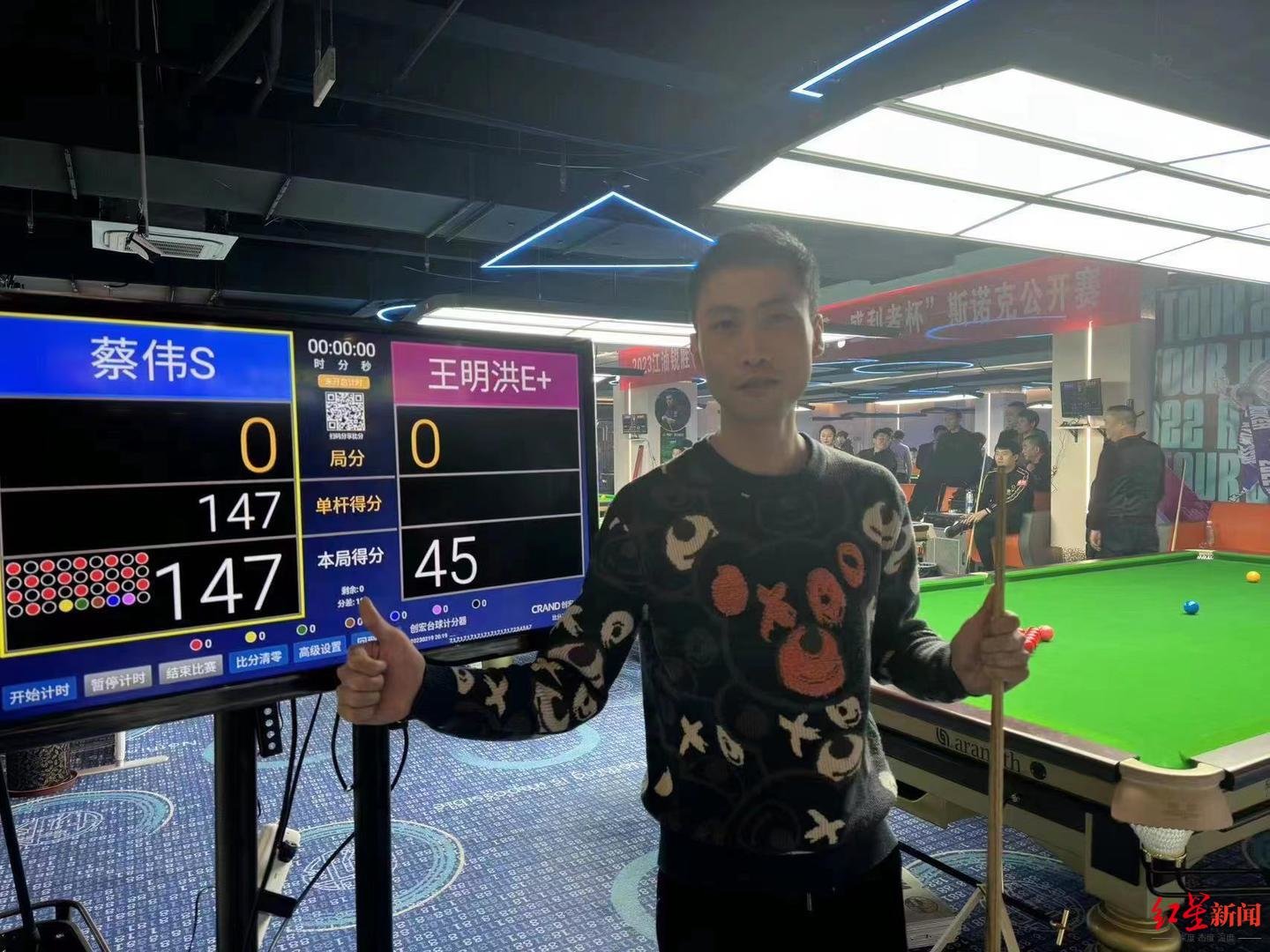 而今年41岁的蔡伟则在接受红星新闻记者的采访时表示,这是自己的一次突破,也为此感到欣慰,希望能借此带动四川台球运动氛围的提升,让更多人认识和喜爱这项运动。