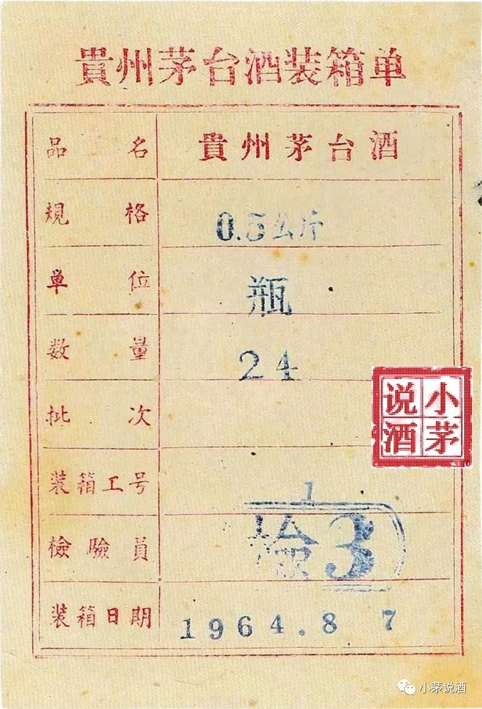 1964年茅台酒装箱单