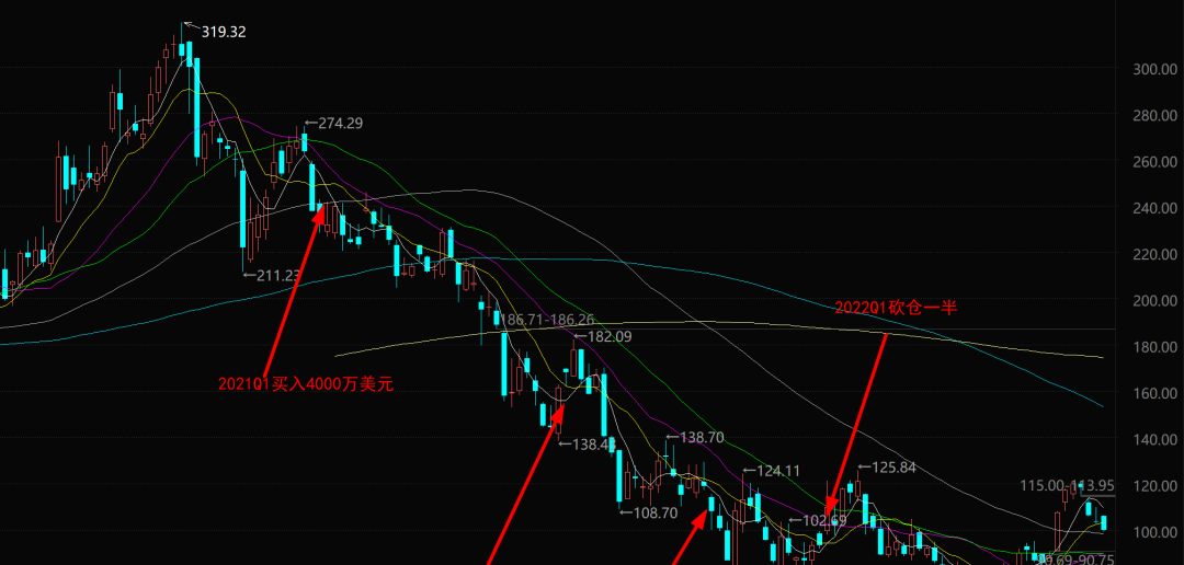 2021年三季度阿里股价继续大跌,芒格加仓13.67万股,均价170元左右,2021年四季度买入30万股,均价133元左右。