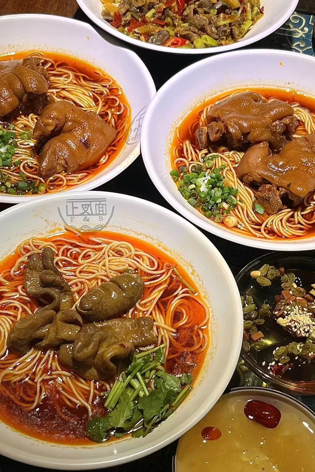 肥肠面和猪脚面。 摄影/没头脑和不高兴