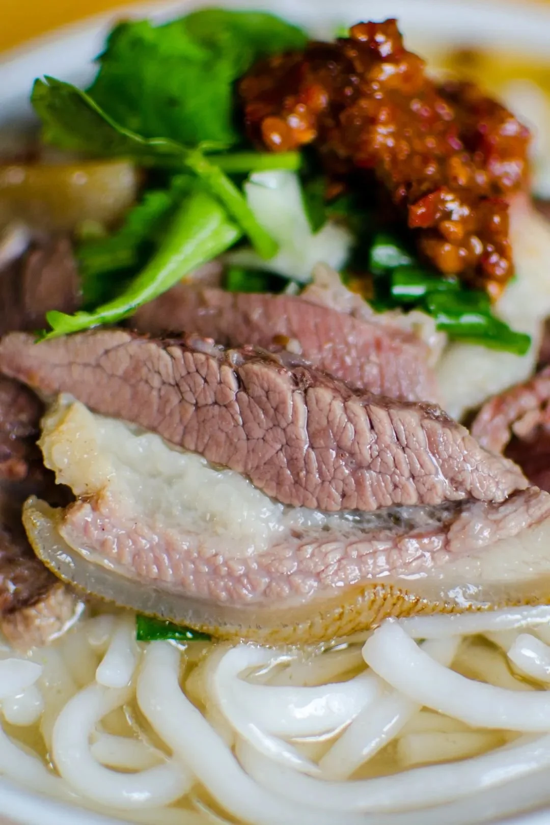 甜水面号称“三根面一碗”,面条足有筷子粗细,煮好后拌上菜油,常温下储存很久也不干不坨。甜水面的关键在甜,而甜的关键则在独家秘方熬的甜红酱油,吃的时候要搅拌均匀,每根面条上都要裹着浓稠的酱汁,麦子的香,酱油的甜和红油的辣混合在一起,巴适得不得了。