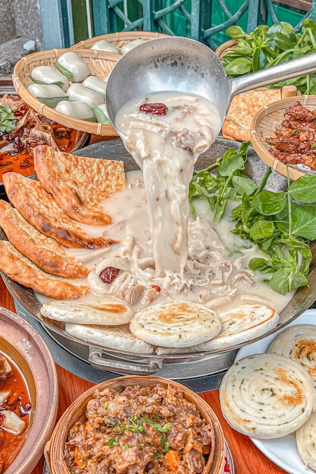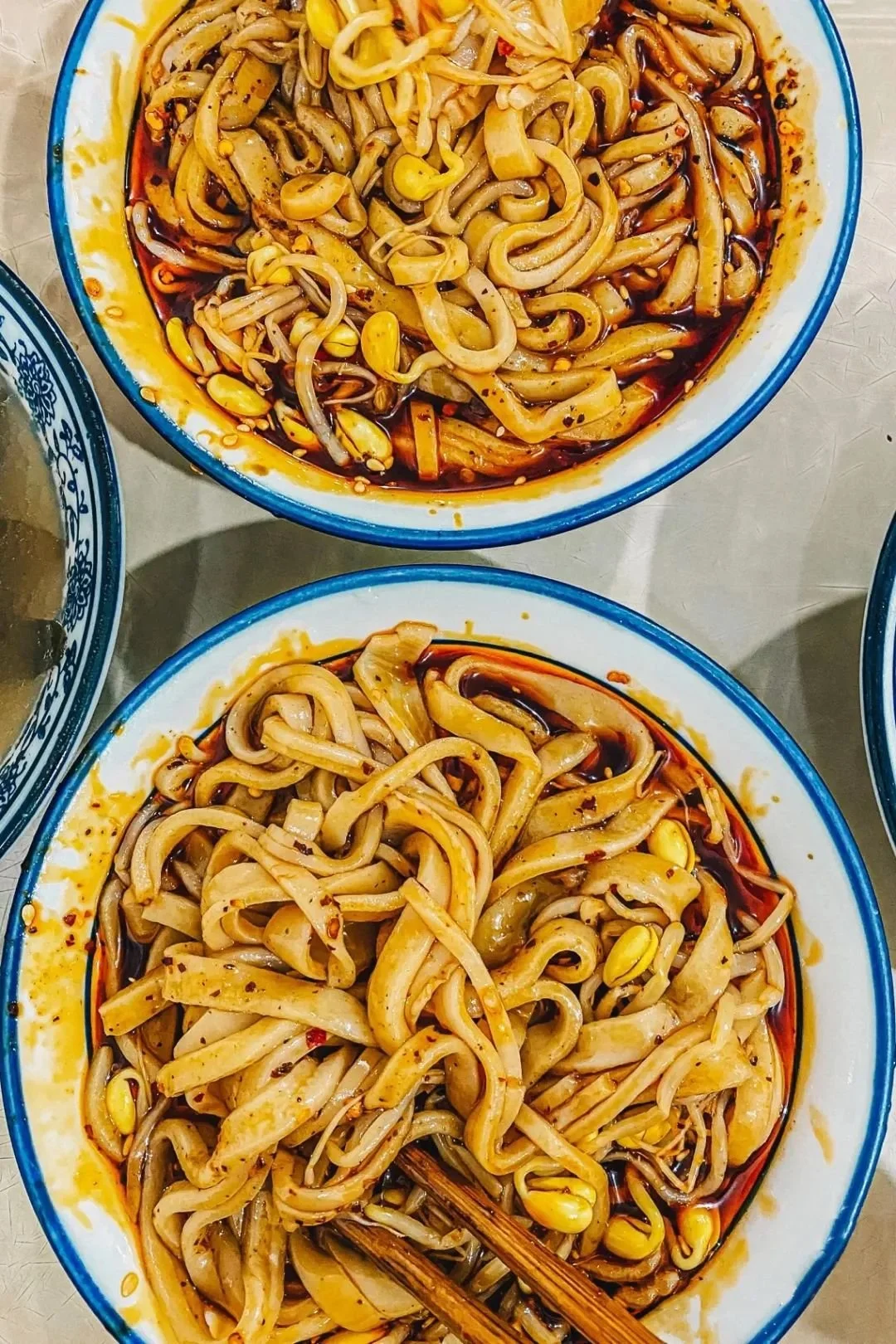 再看靠近陕西的川北,这里的早餐更是一场碳水盛宴,蒸凉面、烩馍、油茶,说不好是带着西北味儿的四川早餐,还是带着四川味儿的西北早餐。