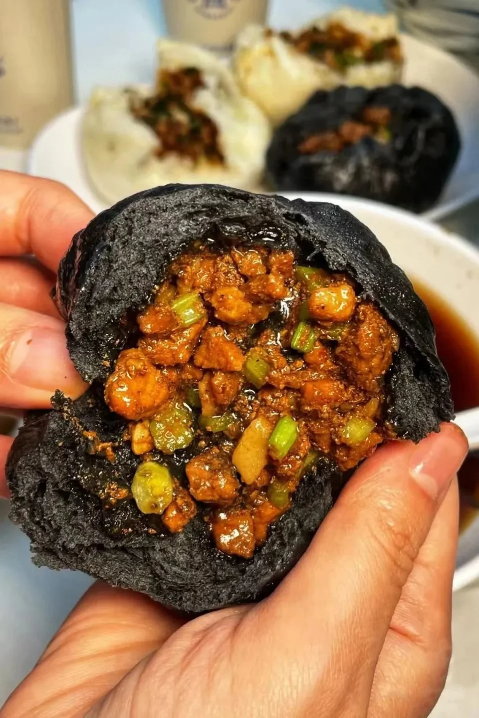 👈向左滑动 包子在成都是很常见的食物,但四川人却把它做的不那么简单,比如把包子皮做成红的、黑的。图1摄影/短腿 图2摄影/野生Tracy