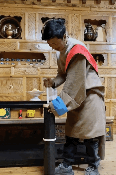 酥油茶制作。图/稻城亚丁四郎