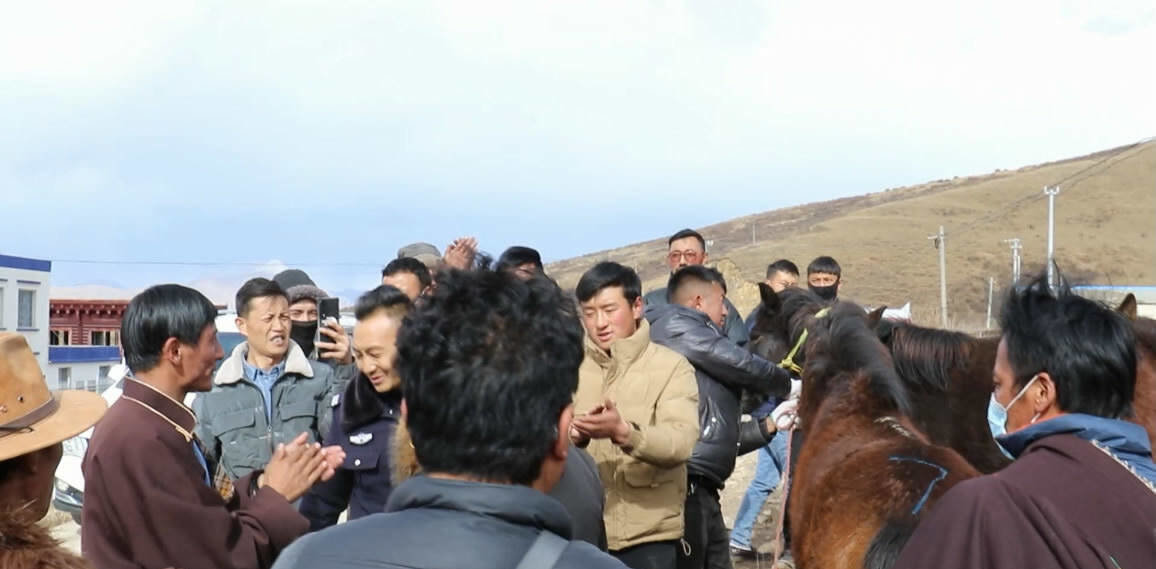 当办案民警和载运马匹的车辆到达下雄派出所时,备好哈达、锦旗的群众排成长龙,早已等候多时。刘鹏和其他3位办案民警一下车,便被团团围住,群众们纷纷上前献哈达,和办案民警握手,表示感谢,场面十分温馨。