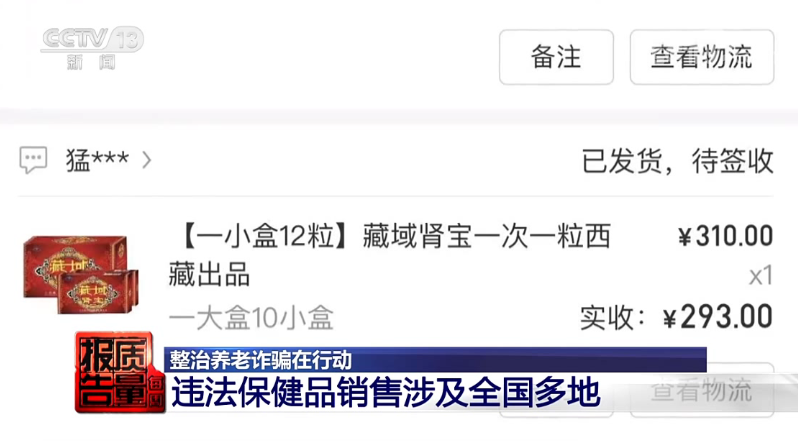 就是这些与人体有极大安全隐患的所谓保健品,不仅在实体店销售火爆,在电商平台的销售也涉及全国多地。执法人员向记者介绍,这家店铺销售手段其实就是简单的套近乎、送礼物等,却一次又一次让老年人上当受骗,尤其是老年男性更是这家店铺欺骗的重点对象。