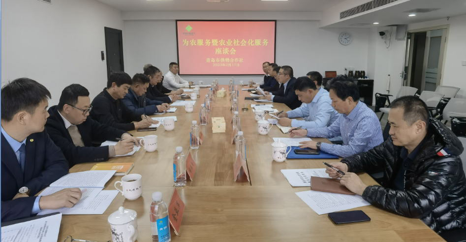 日前,青岛市供销合作社组织召开“为农服务暨农业社会化服务座谈会”。市社党组副书记、监事会主任韩峰出席会议并讲话。我市具有影响力的种粮大户、国家级农民合作社负责人参加了座谈,市农业农村局、市供销社相关处室负责人及青岛农商银行、阳光财产保险相关负责同志参加了会议。