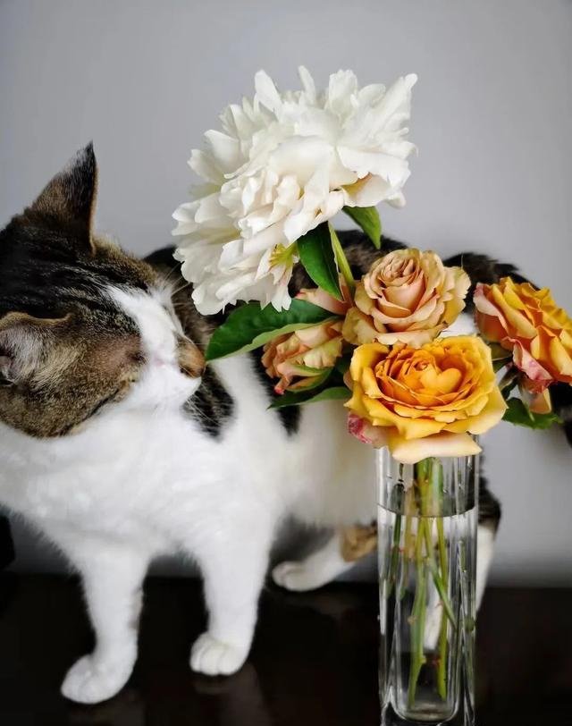 猫咪“悠悠”和“松之梦”“拿铁咖啡”以及白芍药