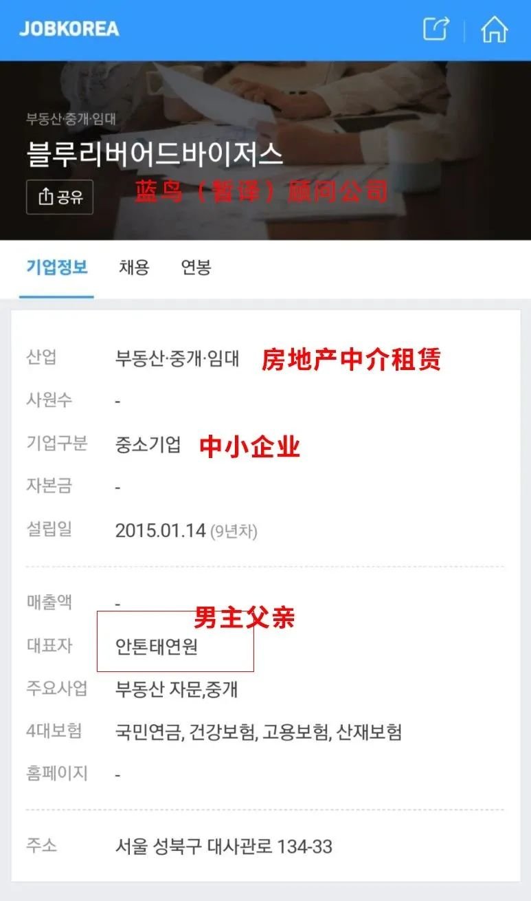 因不分国界的吃瓜群众对三星准女婿的好奇,韩网迅速扒出了男方的父亲是从事房地产业务的蓝鸟(暂译)顾问公司的韩国区负责人。是不是同为富N代不确定,但在韩国再富……也是富不过三星的。