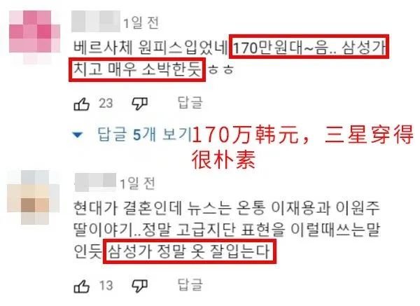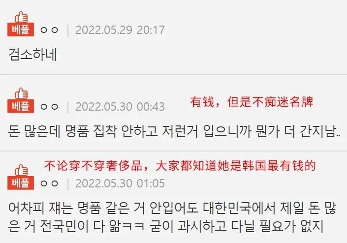 而李元珠因为穿了三百多的卫衣被韩国网友评价“因为自身就是品牌,无论穿什么都是贵的。”