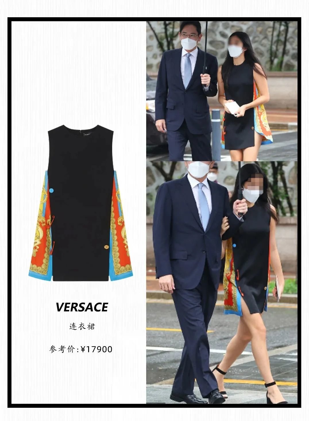 和父亲李在镕参加现代集团总裁(韩国排名第二财阀)女儿婚礼的连衣裙虽然是奢侈品牌VERSACE,价格也并不夸张,已经算是目前来说最贵的一件。