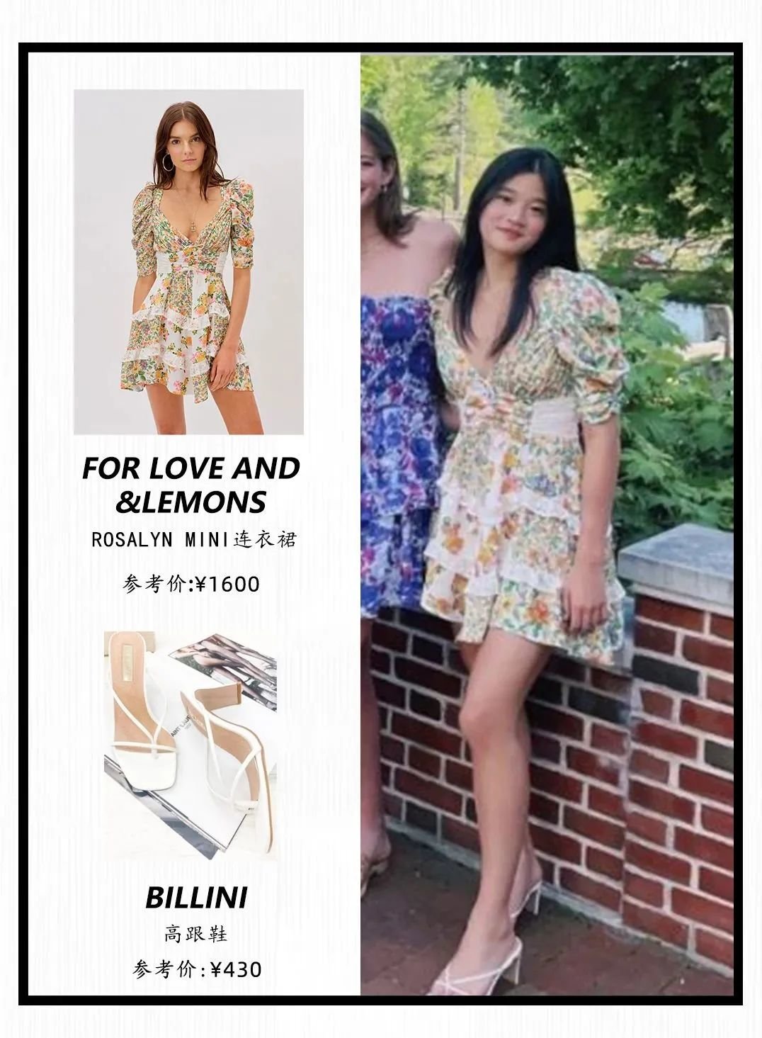 出镜过的几件连衣裙也是相对来说很平价的千元单品,用来搭配的鞋子也才人民币400元+。