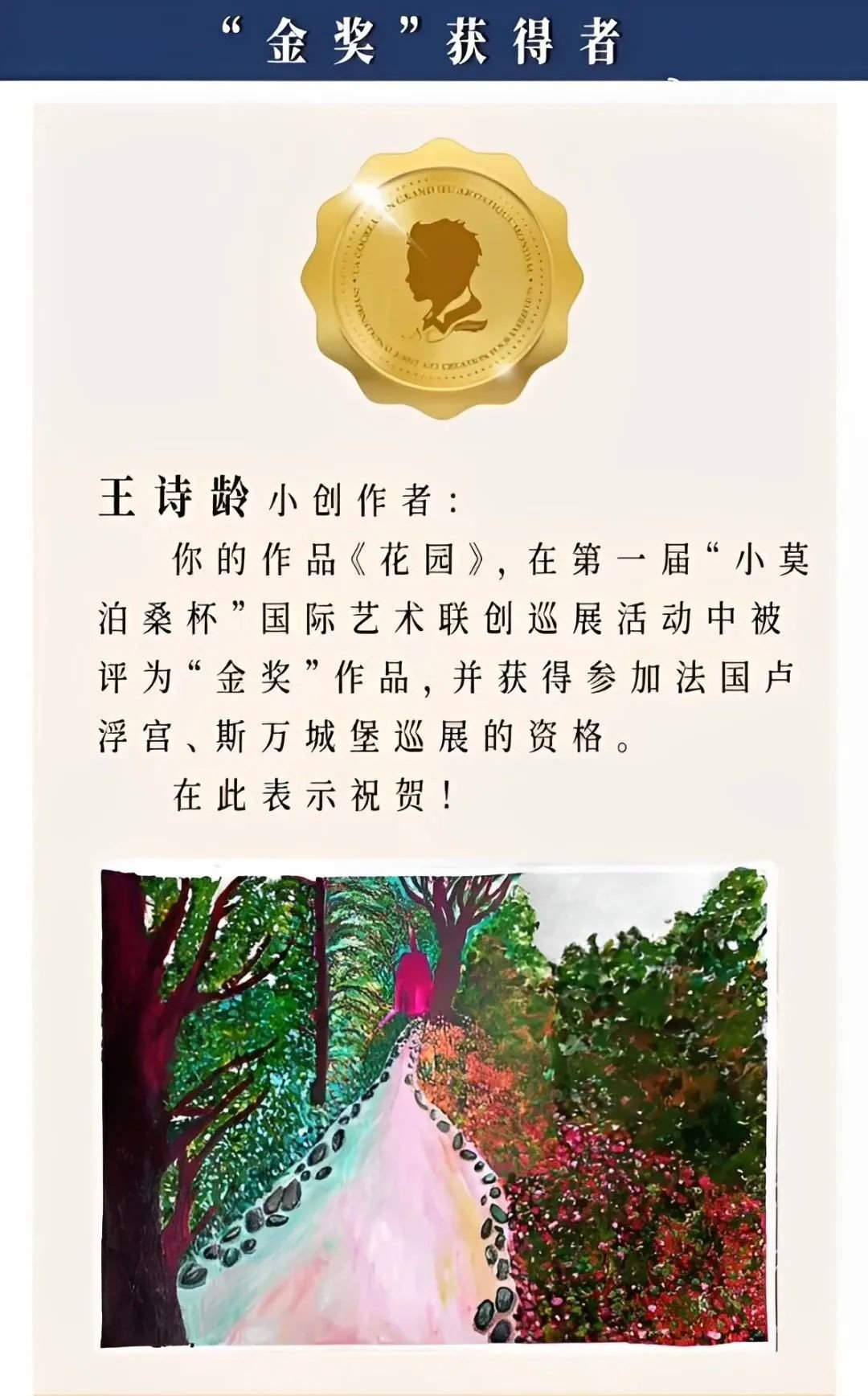 所幸两个女孩也都足够优秀,在各自的天赋领域得到了肯定,王诗龄的画作拿奖、参加展览。
