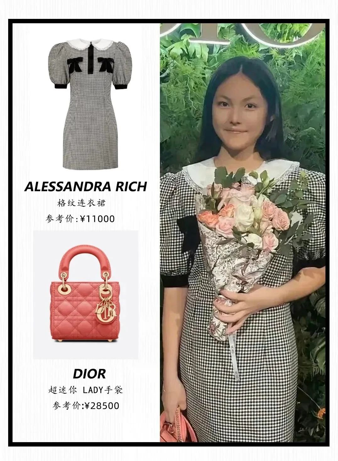 连衣裙比李元珠增加了一位数不说,搭配的背包也是DIOR的。