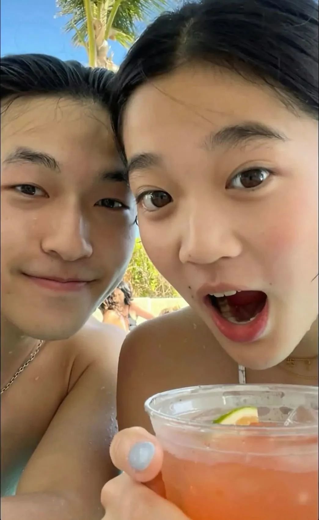 虽然因为一张泳装动图被评论区怀疑过是“姐妹”,但当事人也没有正式回应过两人的关系,似乎只是小情侣在微信朋友圈的官宣,并不想引起大众关注。