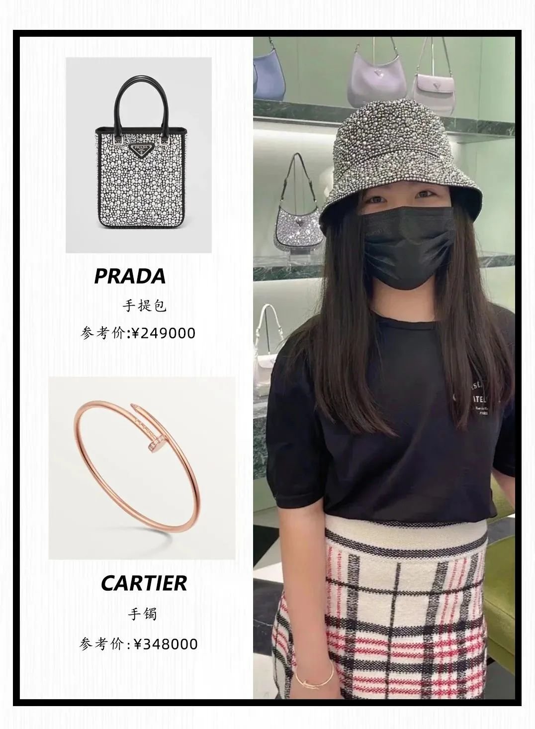 王诗龄的穿搭虽然很贵,但单品出现的频率也很高,比如这个PRADA的帽子就经常出现。