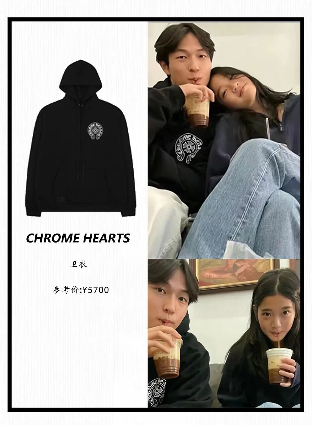 和绯闻男友合照时也是穿的这件卫衣,搭配了更为休闲风格的牛仔裤,看起来很像是穿了情侣装,实际上男方身上这件卫衣的价格翻了几倍。