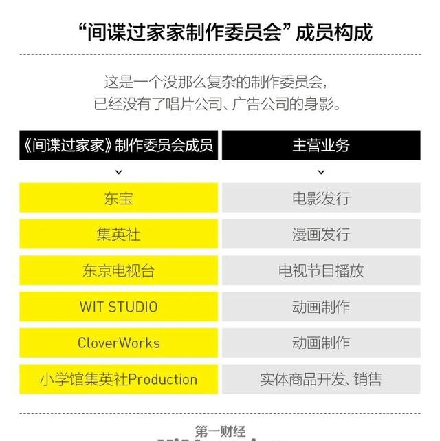 在《间谍过家家》这个项目上,东宝成了团队召集方,与其余5家企业共同出资成立了“间谍过家家制作委员会”,集中管理版权,负责动画企划、制作、发行和版权二次使用等事项。