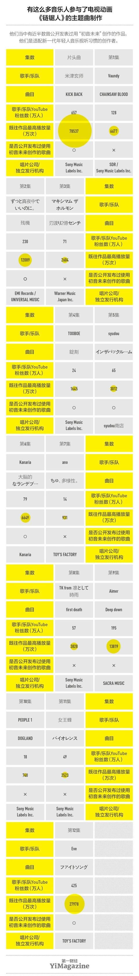 参与《链锯人》的音乐人中,近半数曾公开发表过用“初音未来”创作的作品。十多年前,他们共同参与了一场围绕“初音未来”的二次创作。如今,他们踏入商业领域,和其他音乐人共同书写名为“链锯人”的命题作文。
