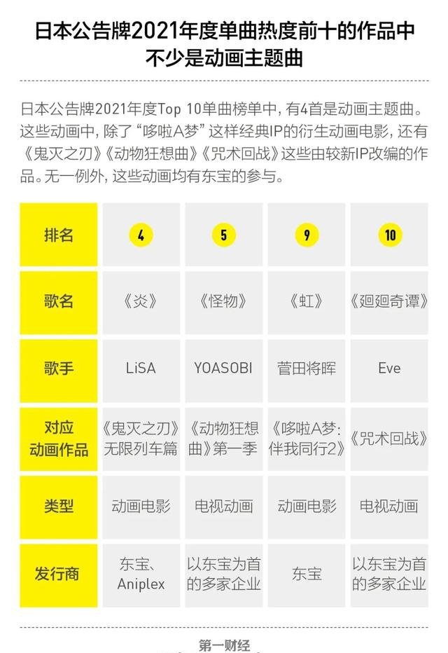 在日本公告牌(Billboard Japan)12月公布的单曲周榜中,每周热度前十的曲目中总有三四首是动画主题曲。其中动画《间谍过家家》(SPY×FAMILY)和《航海王:红发歌姬》的主题曲已经在榜单上停留了半年以上。
