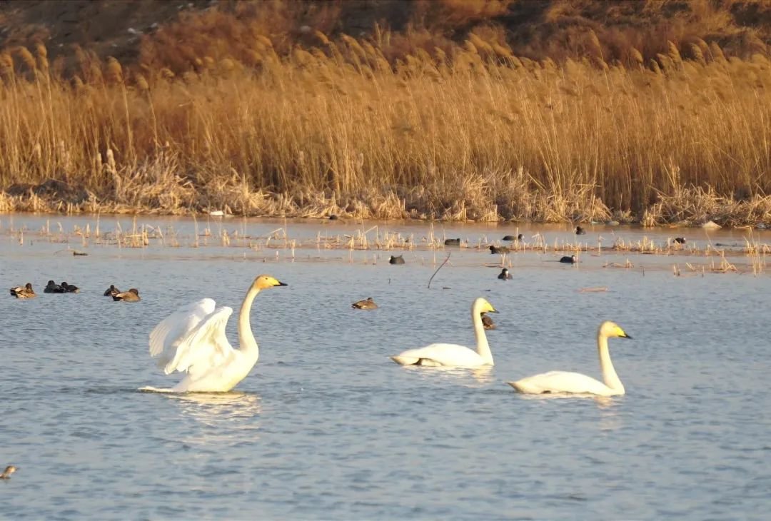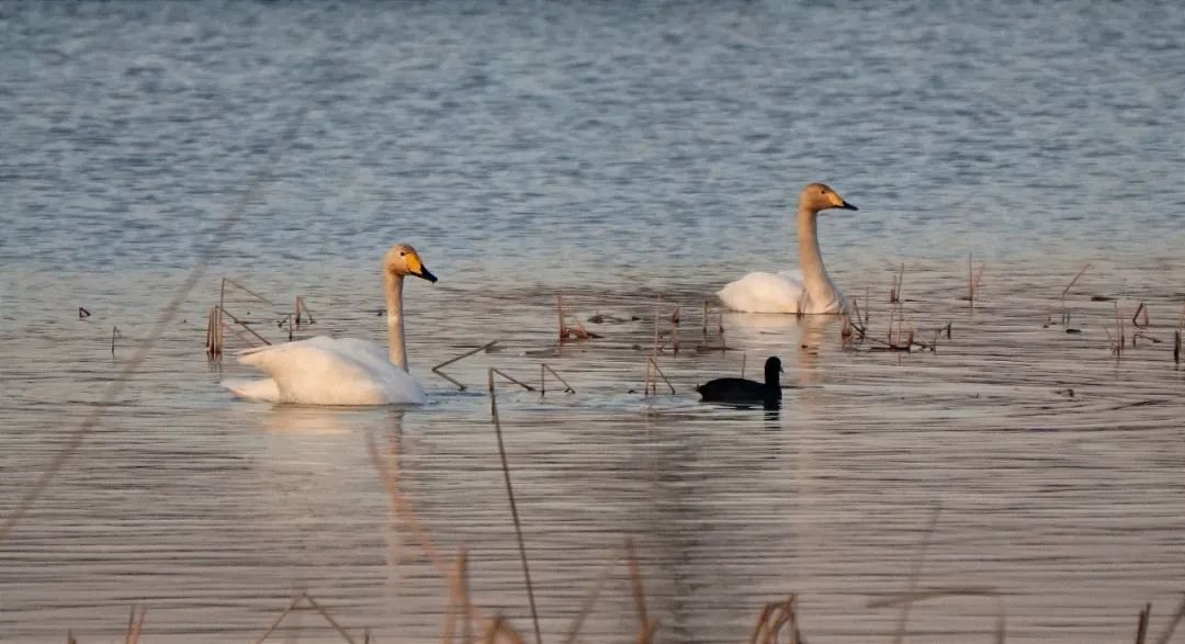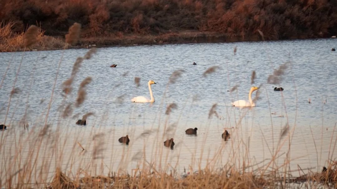又到候鸟迁徙季。连日来,该市野生动植物保护救护站工作人员在大沙河不同区域,监测到多群国家二级保护动物白天鹅。