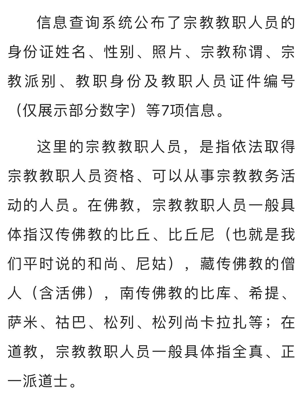 如果被查询人确为经依法认定备案的宗教教职人员,系统将显示该宗教教职人员相关信息。