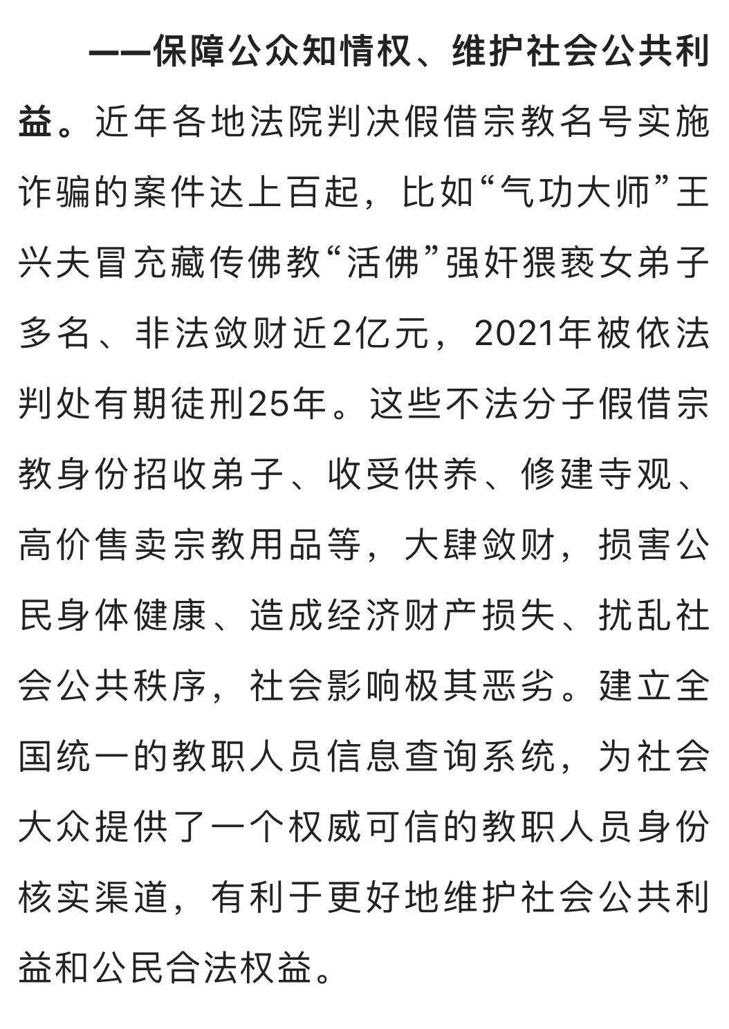 总而言之,真的假不了,假的真不了!广大群众要擦亮眼睛,提高对假冒宗教教职人员及其非法行为的辨识和抵制能力。据了解,伊斯兰教、天主教、基督教教职人员信息查询系统不久后也将上线发布,值得期待!