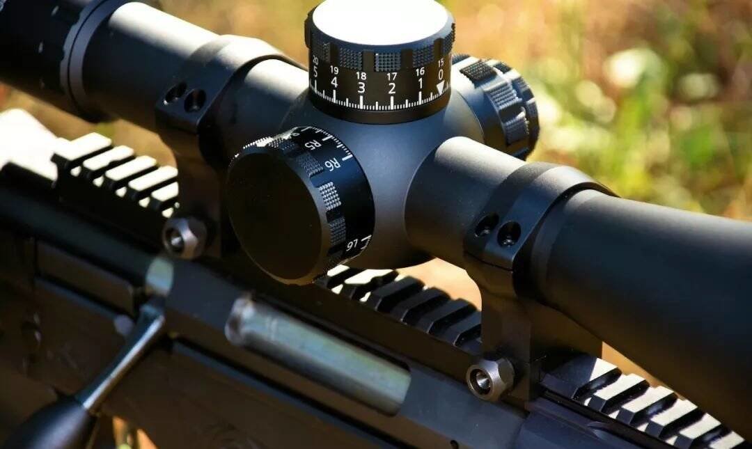 图注:瞄准镜上的旋钮是用来修正风偏和距离的