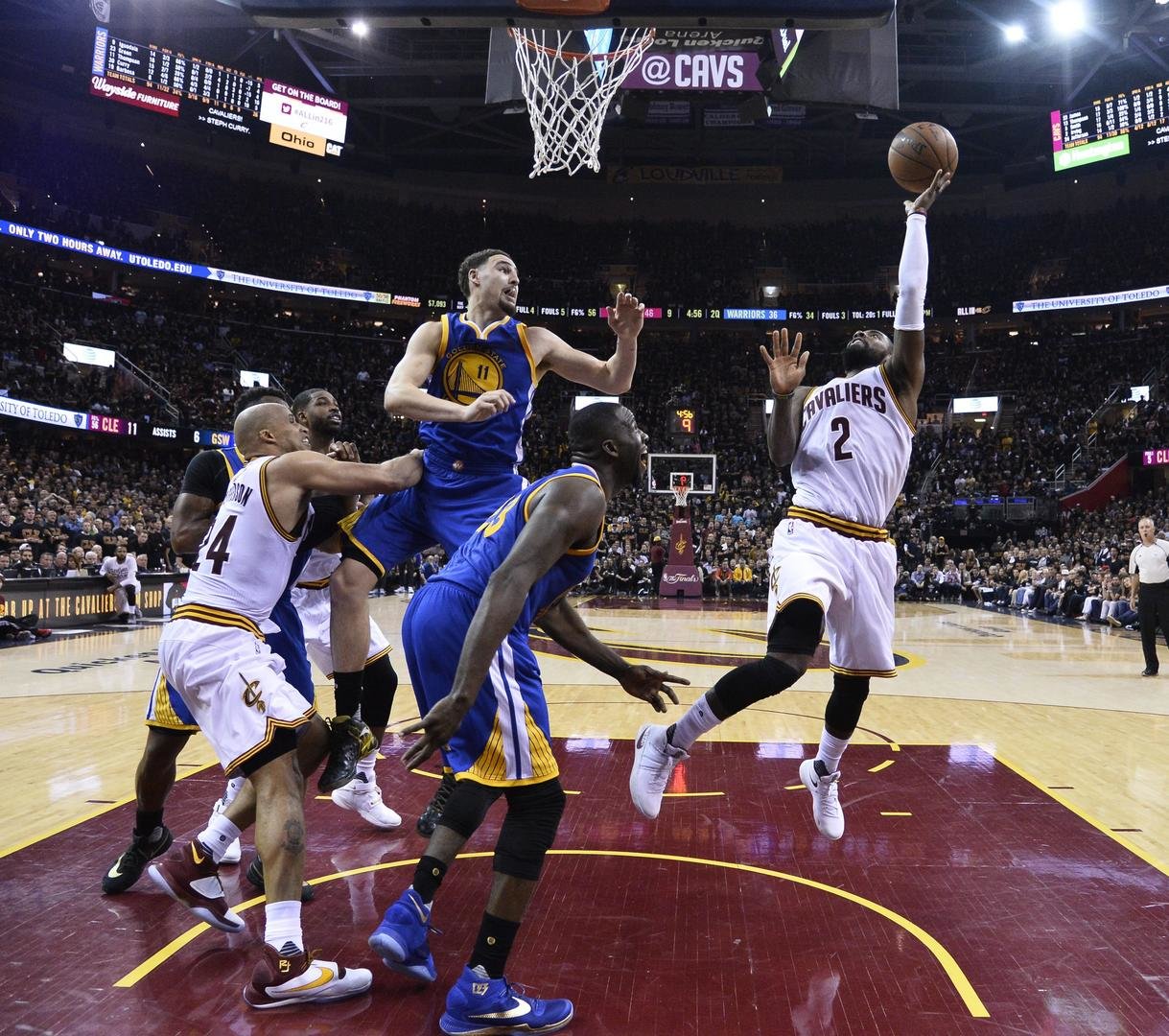 当骑士以为能趁胜追击再下一局时,面对着恐怖的勇士,骑士第一次在主场输了球。所有人都认为骑士完了,因为NBA历史上没有球队能够在1比3的情况下逆转。但第五场比赛,欧文又用41分3篮板6助攻的数据,与詹姆斯一起将骑士从悬崖边上拉了回来,NBA历史上第一次出现同一支球队两名队员得分都上了40分的表现,骑士将比赛的悬念再一次带回到克利夫兰。第六场比赛在骑士的主场进行,詹姆斯再一次砍下了全场的最高分42分,带领球队将比赛拖入了抢七大战。大比分来到3比3后,克利夫兰又燃起了夺冠希望。最终的决战,JR·史密斯连续投进三分球帮助球队紧紧咬住比分,詹姆斯的封盖、欧文的三分、乐福的防守,成功地帮助骑士队逆转夺冠。