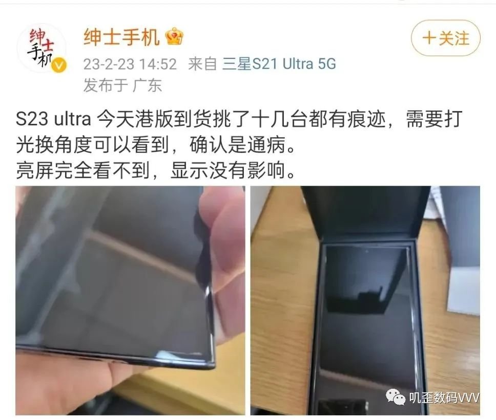 有博主表示,三星S23 Ultra打光角度下屏幕有痕迹,而且是十几台都有痕迹,确认是通病,不过同时他也强调了亮屏完全看不到,显示没有影响。