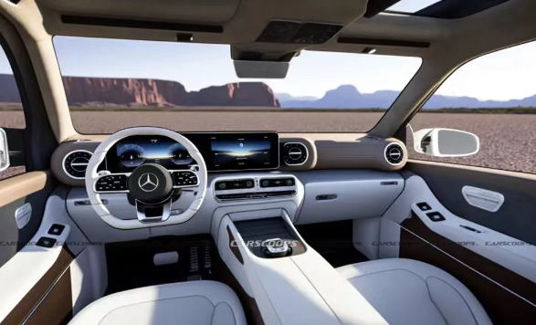 内容方面,根据公布的假想图,GLG车型沿袭了目前奔驰的内饰设计语言,不过在配色用料上更大胆,更加符合年轻时尚的调性。