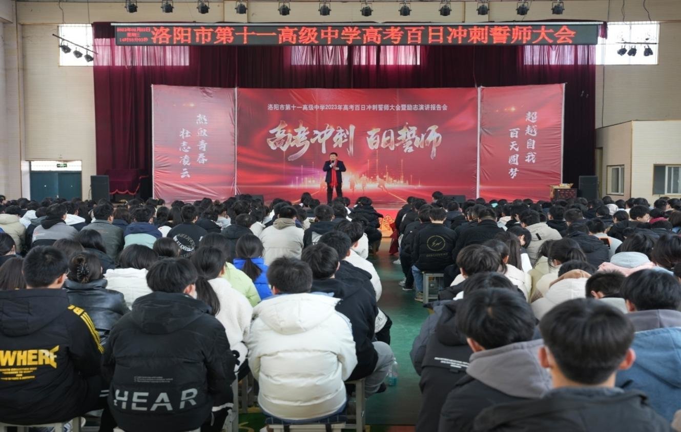 十二载厉兵秣马,一百天蓄势待发。2月23日下午,洛阳市第十一高级中学在校体育馆隆重举行了以“赢在高考,黑马方案”为主题的2023年高三百日冲刺誓师大会。