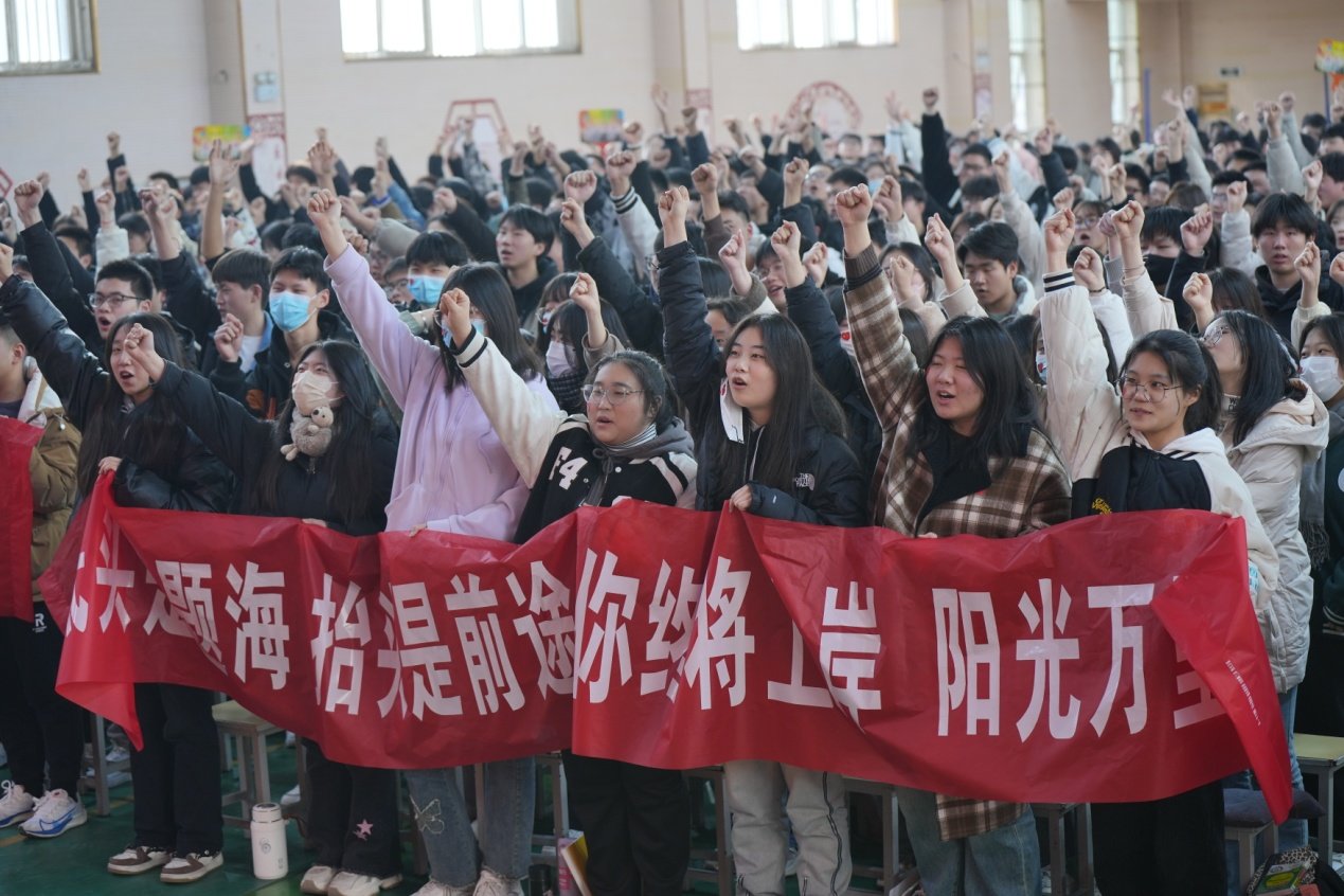 各个班级之间进行班级口号大比拼,各班学生激情澎湃地呐喊出自己的梦想和决心。