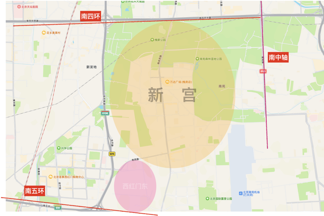 这两条地铁线覆盖了丽泽、西单、金融街、西直门、中关村等北京重要产业商圈,也就导致了新宫是以上产业圈辐射的居住区。
