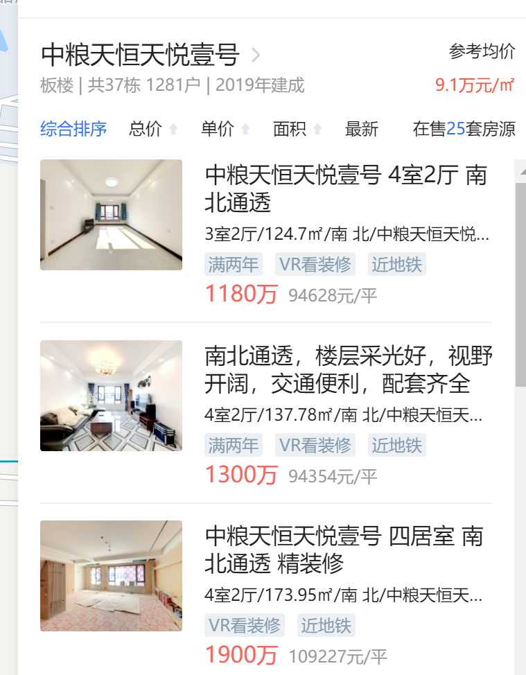 从单价来看,建发·璟院目前限价是8.3万/平左右。而中粮天恒天悦壹号,区间内户型挂牌价在9-10万/平。