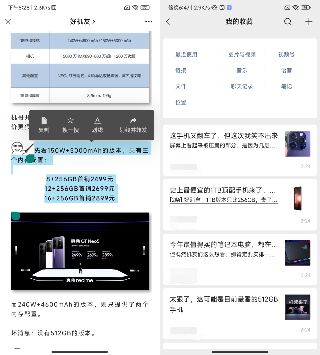 而且注意看,使用划线和直接收藏文章,所展示的形式是不一样的。