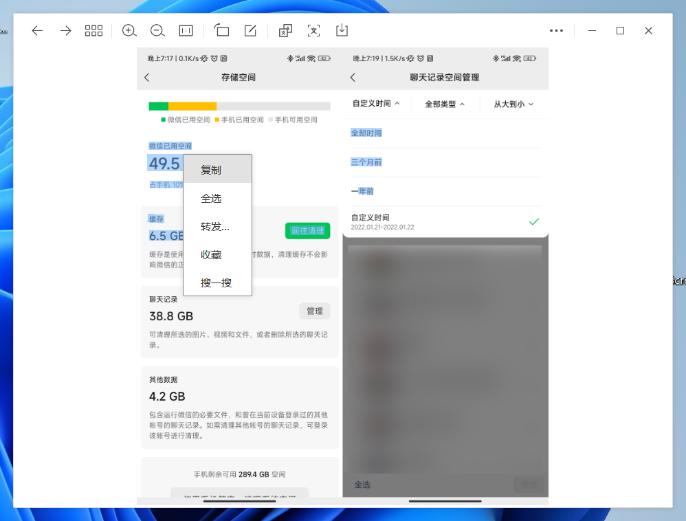 不看不知道,我这微信都快占用50GB的存储空间了。。