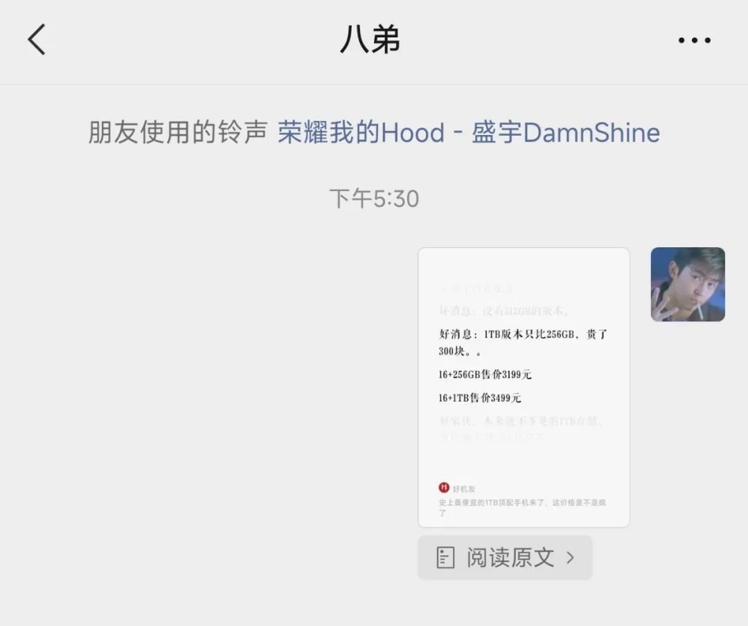 转发之后的形式,有点像大家在网易云转发歌词,微信会在聊天里自动生成一张图片。