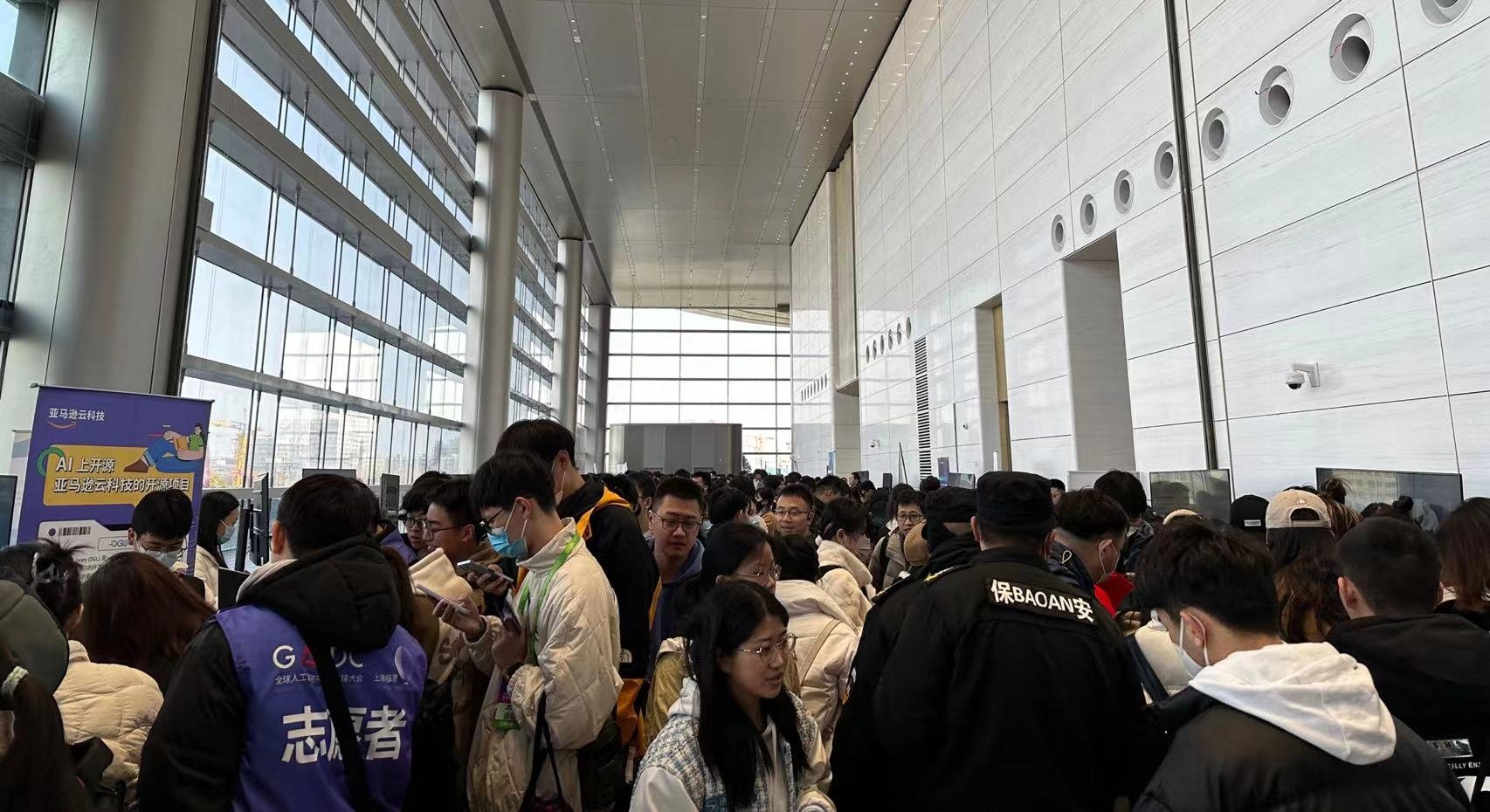 2月25日,2023全球人工智能开发者先锋大会会场一侧举办的人才市场上人头攒动。
