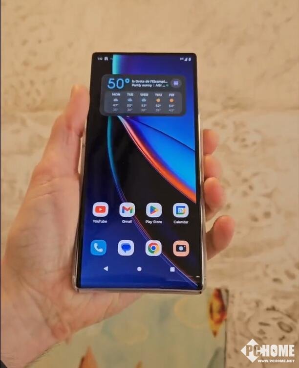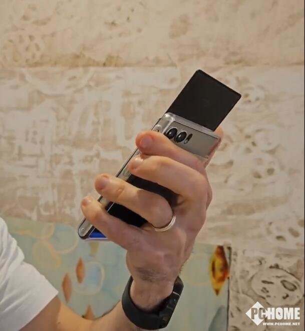 从机身背部可以看到,在屏幕收起时,是卷起在机身背部的。此时这部分屏幕可以充当副屏来使用,一些轻量级的使用完全可以在此区域进行互动,比如各种通知信息的呈现、导航使用、主摄自拍等。