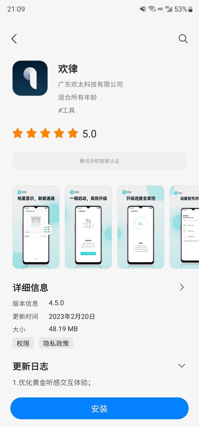 首先我们下载欢律App,注意这是OPPO耳机的官方软件喔,不是什么流氓软件。