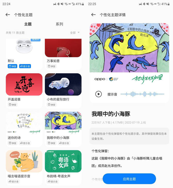 然后来到个性化主题,选择自己喜欢的弹窗动画下载应用就好了。可以选择的主题还是挺多的,还可以额外设置个性化提示音。设置好之后每次连接耳机都会弹出效果喔。