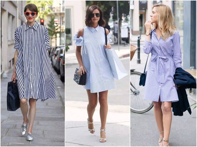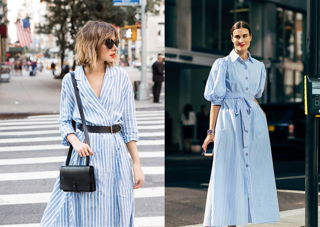 那么,大家可以提前备好春季穿的衬衫裙了,其中,条纹款比较流行又不单调,穿在身上好看又减龄。