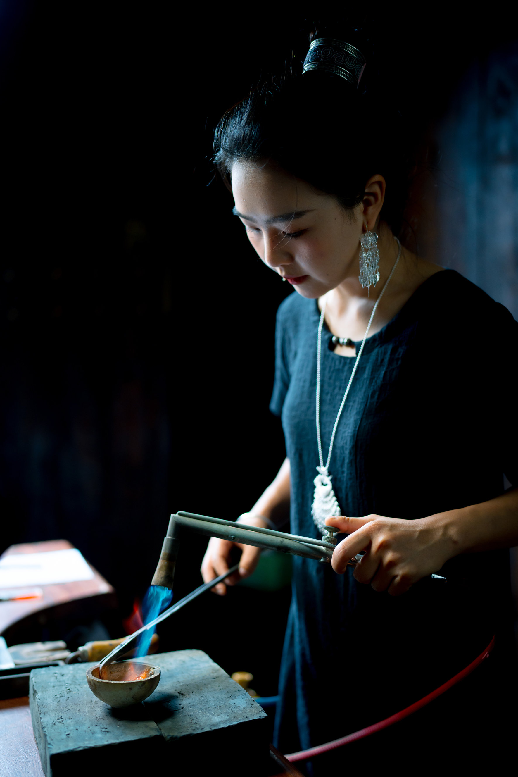 在视频号里,她是小有名气的“银匠雪儿”;镜头外,她是一名苗族银饰锻造非遗传承人,自幼便与银饰结下了不解之缘。