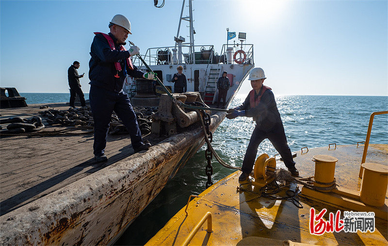 “布设这么大的海上测风浮标,对我们来说还是第一次。”北海航海保障中心秦皇岛航标处航标导航科工程师敖自栋说,因为浮标下水处的水深限制,需要先用渔船拖拽离港,在海上交接给航标船,再由航标船拖运至布设海域进行布设。