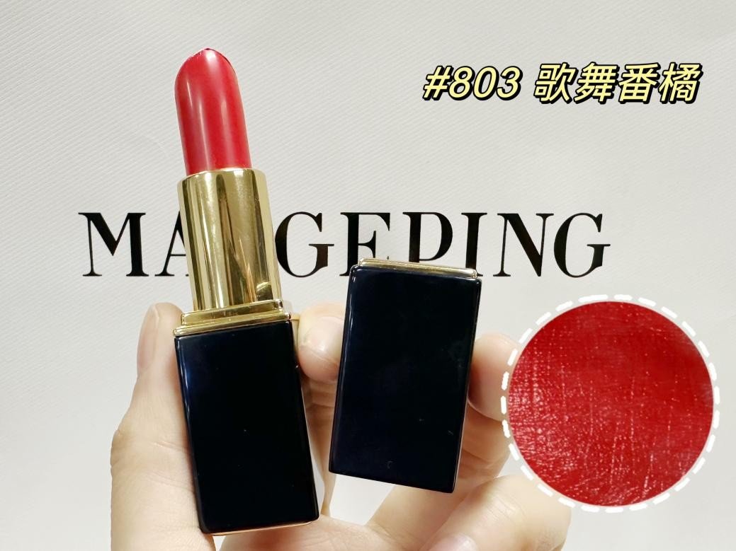 拍照记得带上毛戈平魅色凝润唇膏#803歌舞番橘,它非常显嫩显元气,减龄无敌,带有微微的橘色调,黄皮、白皮、黑皮、橄榄皮都能轻松驾驭。薄涂有点像珊瑚色,可以显得人气色很好,厚涂则提亮肤色不止一度,让你从大合照中脱颖而出!
