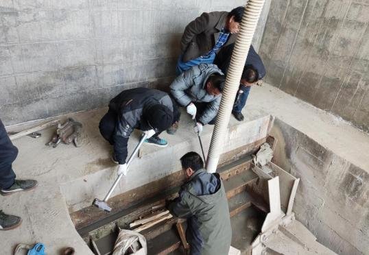 在瓜州县榆林河水库,灌区水利服务所干部职工们正在坝下浇筑混凝土维护水库输水口,榆林河灌区水利服务所的全体干部职工们正忙着巡查、检修和维护灌区各类水利设施设备,各级渠道沿线一片繁忙的景象。